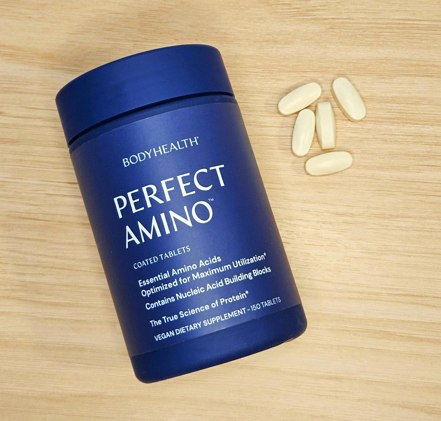 The power of PERFECT AMINO® is that it’s the exact essential amino acids, in the exact ratio needed to build new protein, but without the extra amino acids.So we synthesize new protein, but without the caloric impact from excess, unused amino acids.